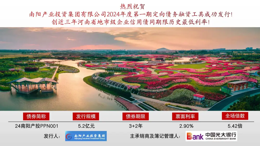 南阳产业投资集团有限公司是南阳市人民政府出资的国有资本产业投资运营公司,是市委、市政府实施产业强市行动,支撑全市产业转型发展的重要载体和平台。公司组建于2018年10月,法定代表人、董事长胡明柱,截止2024年6月底,集团资产规模达到1080亿,企业主体信用评级AAA。
